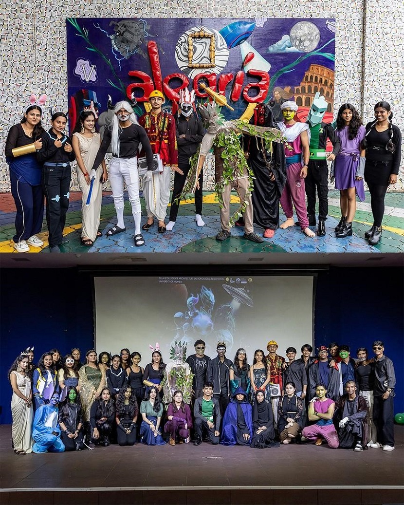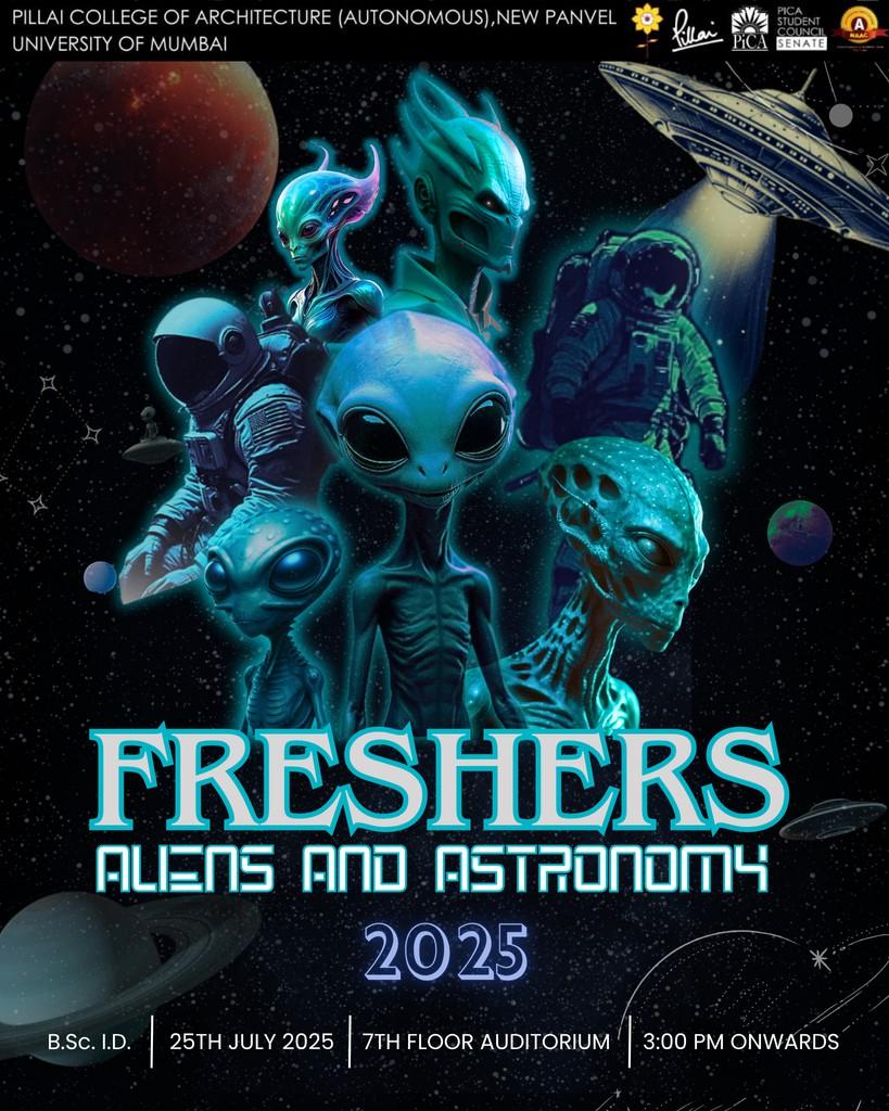 The B.Sc. Interior Design Fresher’s Event at Pillai College of Architecture, themed “Aliens and Astronomy”, was conducted with excitement and creative flair. Originally scheduled to begin at 3:00 p.m., the event had to be preponed to 1:45 p.m. following a red alert warning for heavy rainfall. This decision was made after a brief discussion involving faculty members and key council representatives. However, upon reaching the venue, the team discovered a prior booking conflict, which led to the event starting at its original 3:00 p.m. time. This last-minute confusion led to a compressed schedule, causing delays and rushed management on several fronts.