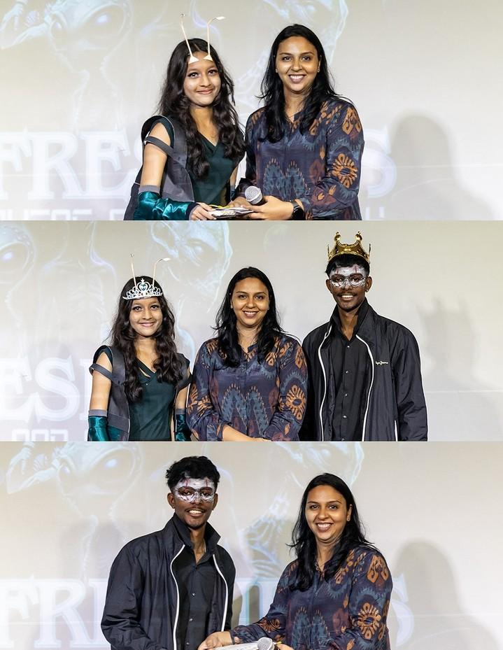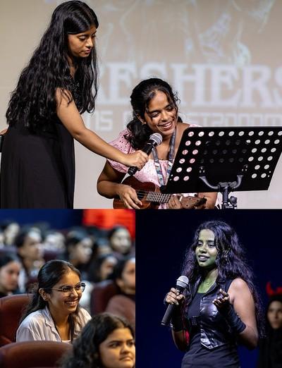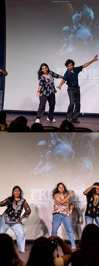 The Event itself featured a diverse range of performances including solo and group dances, musical acts, fashion walk, interactive games, and three rounds of fresher introductions. Anchors maintained the energy of the room, and the creative setup designed by the second-year students brought the outer-space theme to life. However, due to the sudden timing change, several teams faced challenges: the decor team had very limited time for installation and had to redo parts of their setup; games and introductions had to be cut short, which affected the flow; and the hamper packing was incomplete due to the sudden change in the schedule, resulting in little confusion during distribution. The discipline team also found it difficult to manage decorum due to the overall rush.