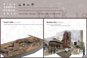 Webinar Minutes : 5.05 pm: Introduction by Prof. Kavita Pradhan 5.15 pm: Presentation by Somesh Mhatre Thesis Topic: Re-inventing an Apartment building using micro-houses 5.30 pm: Presentation by Aakruti Vaidya Thesis Topic: Redevelopment of An Equestrian Academy 5.55 pm: Question and answer session