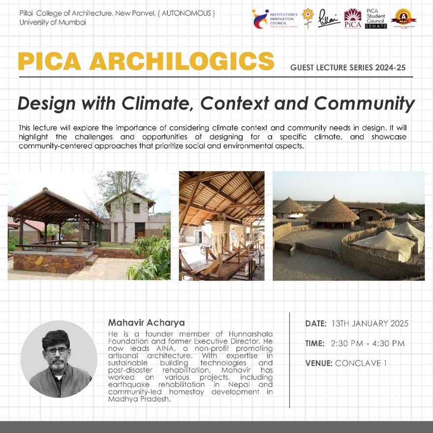 The guest lecture titled “Design with Climate, Context and Community” highlighted the importance of integrating local context and community needs into the design process, with climate responsive approach. It emphasized how effective design goes beyond aesthetics and functionality, focusing on creating solutions that are socially, culturally, and environmentally relevant. By considering the community’s values and challenges, designers can create more sustainable and impactful outcomes. The lecture reinforced the idea that design should be a collaborative effort that serves both people and place.