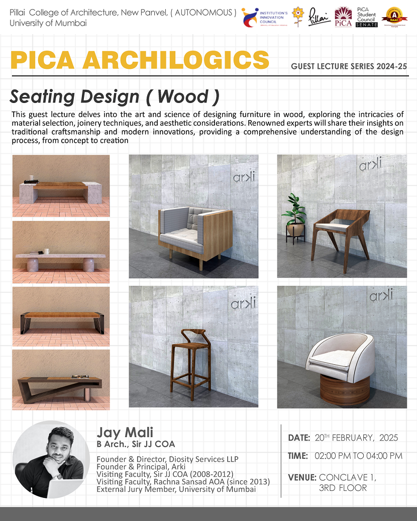 This lecture was arranged specially for Semester 4 – College Project Studio where students have already designed a chair in plywood. Students brought A2 Sheets and Model that exhibited their ideas to Guest who went through all the work of the students and gave comments on the possibility of the concept to be developed into real piece of furniture along with the joinery