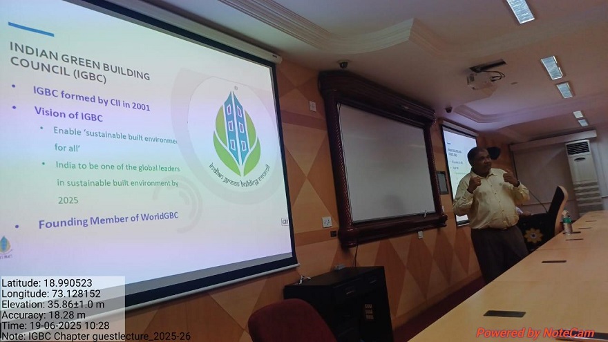 The session aimed to introduce students to the Indian Green Building Council (IGBC) and its Green Campus Certification framework. As sustainability becomes a core concern in architectural and urban development, understanding IGBC guidelines is crucial for integrating eco-friendly strategies in campus design, operation, and management.