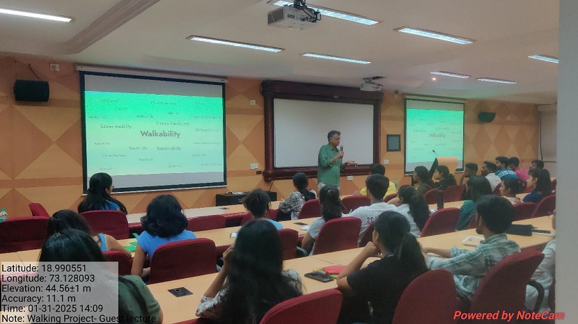 The event took place on 31st January 2025, Monday: 2:00 – 4:00 PM. It was very insightful and engaging lecture on “Walkable MMR by the Walking Project“, as a part of Value-Added Course on Livable Cities. The expertise and insightful presentation were truly engaging, and we’re deeply appreciative of the valuable knowledge and perspectives that were shared.