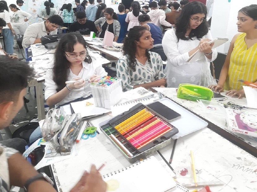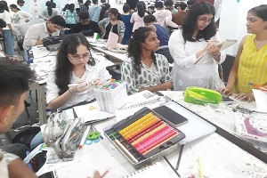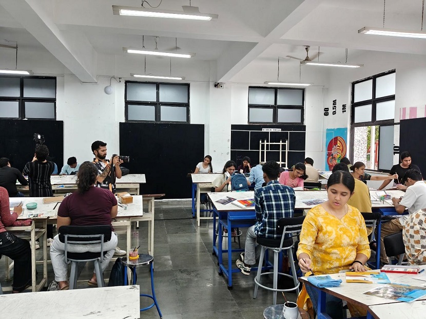 A presentation by the faculty in charge showcased paintings by legendary artists from around the world, illustrating techniques of abstraction and emotional expression. The session also included an interactive discussion, where students shared their observations and interpretations of the photographs. This dialogue set the stage for their creative exploration through sketching and painting.