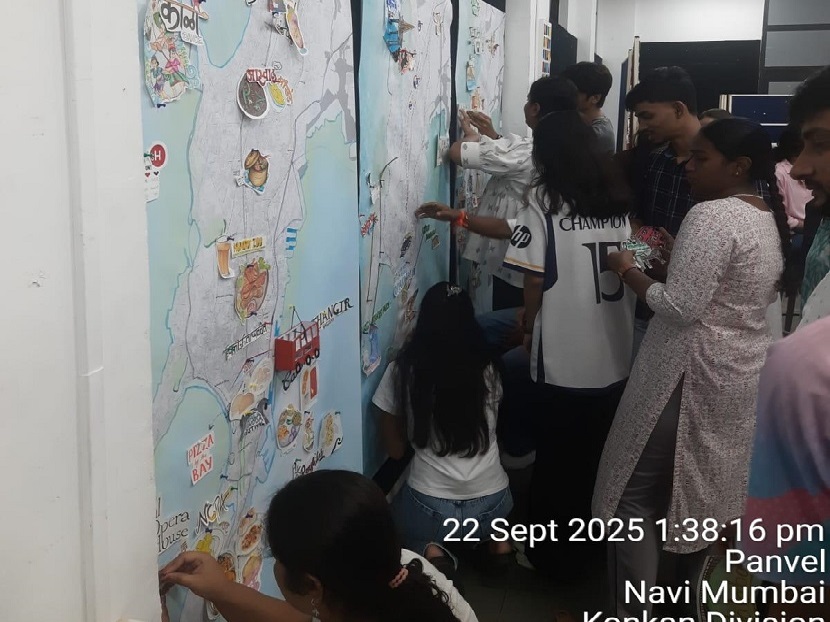 Students learned to perceive Mumbai not just as a city of buildings but as a dynamic cultural landscape. The exercise fostered observational and analytical skills, teamwork, and creative visualization. By connecting cartography with culture, students developed sensitivity to how everyday spaces and practices contribute to the city’s identity and collective memory.