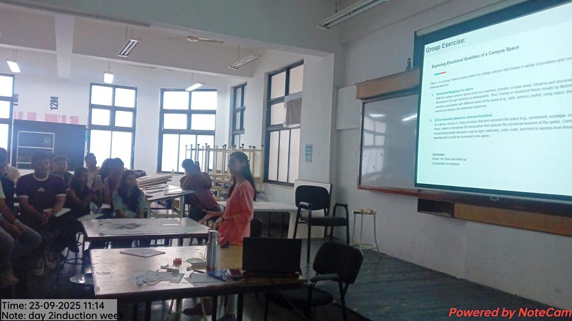 The workshop on Emotional Journey Through Space was conducted on the second day of the orientation week. The session began with an introduction to the workshop objectives, followed by an open discussion on various emotions and how they are experienced in everyday life.