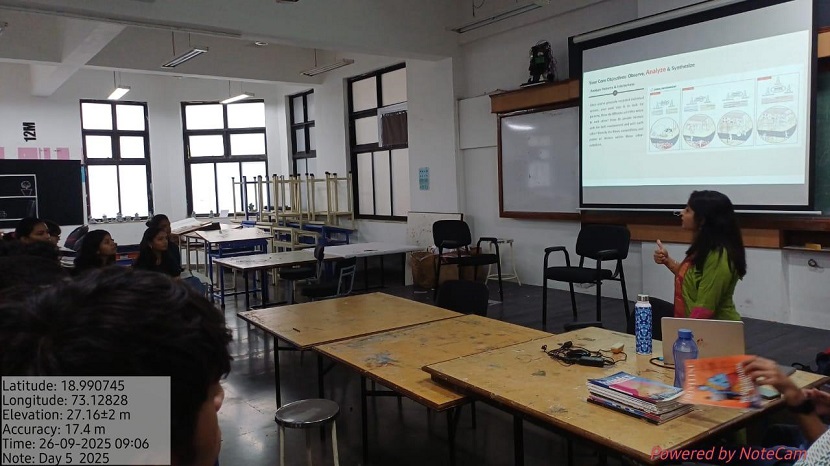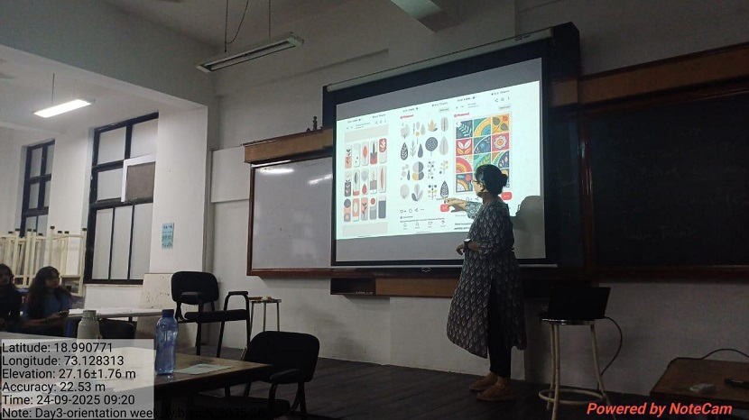 Prof. Aarti Mankame conducted an orientation on “Mumbai’s Cultural Layers”—highlighting the city’s evolution, heritage, diversity, and unique urban fabric. Students were also introduced to reading and understanding maps through an interactive presentation that explained various map elements such as scale, orientation, and layering.