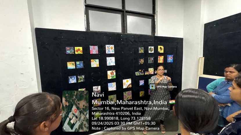 Students were guided to select samples from nature and study their physical and aesthetic characteristics. Prof. Aarti demonstrated methods to abstract and translate these natural observations into creative visual compositions. The emphasis was on analyzing details and deriving simplified yet expressive representations inspired by nature’s inherent order and diversity.