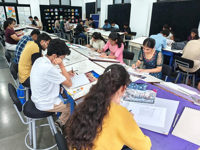 The workshop was conducted by a dynamic faculty team comprising Prof. Ashwini Bhosale, Prof. Kedar Sawant, Prof. Jayesh P., and Prof. Sahil S. Together, the team brought in a blend of architectural design expertise, urban studies perspective, and strong visual communication skills, which enriched the session for the first-year students. Their combined experience in teaching, research, and practice helped guide the students through the process of observation, analysis, and creative representation, making the workshop both insightful and engaging.