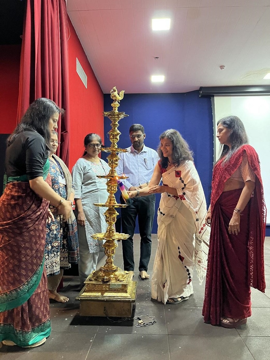 The program commenced with the lighting of the ceremonial diya, symbolizing the beginning of an enlightening academic phase. The event was gracefully hosted by Prof. Sayalee Kulkarni, Head of the Department, B.Sc. Interior Design.