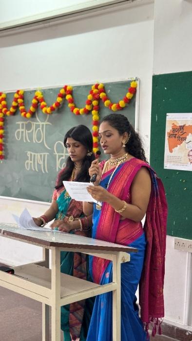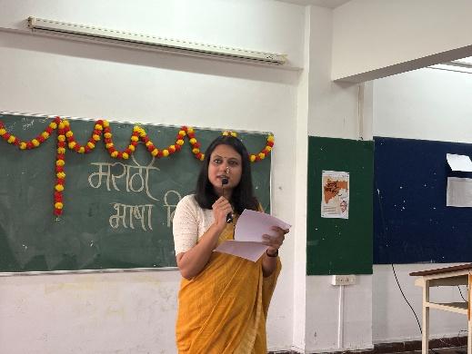 The Student Council organized interactive activities and games, such as a word conversion game, cultural discussions, and poetry recitals, to encourage students from diverse linguistic backgrounds to embrace Marathi as a language of unity and heritage.