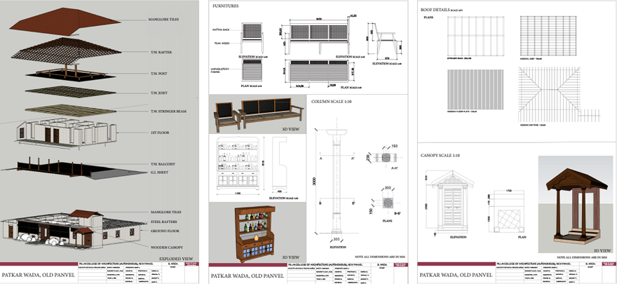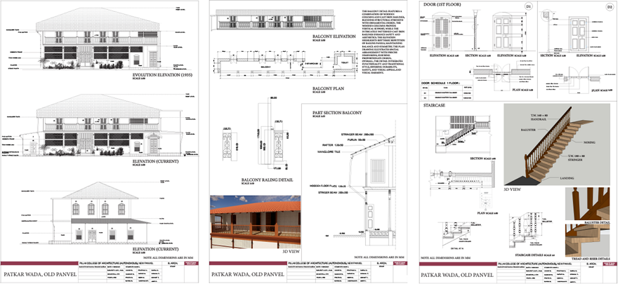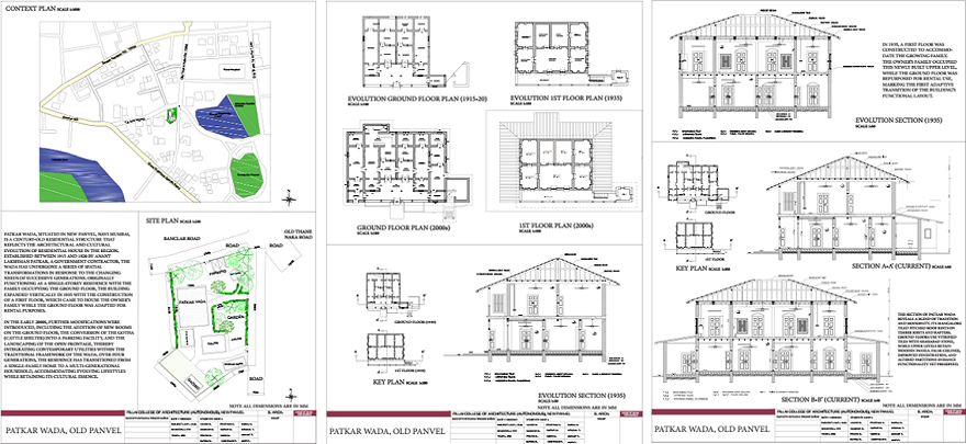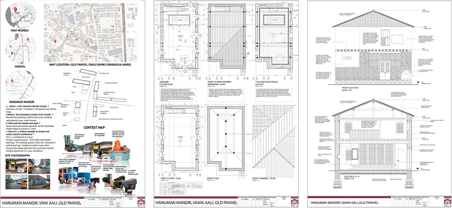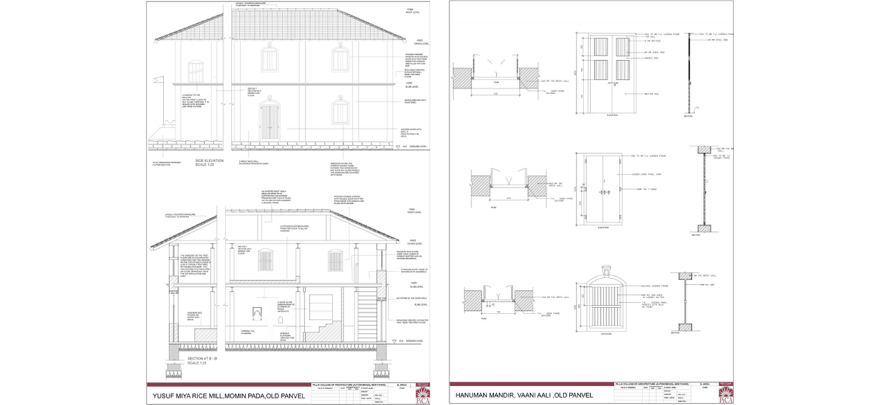 By the end of the workshop, students prepared a professional documentation portfolio of 7 structures – Patkar Wads, Maruti Mandir and Yusufmiya Rice Mill, Hanuman Mandir, Nutan Gujrati School, and two Chawls of Kanpile family in Panvel area.