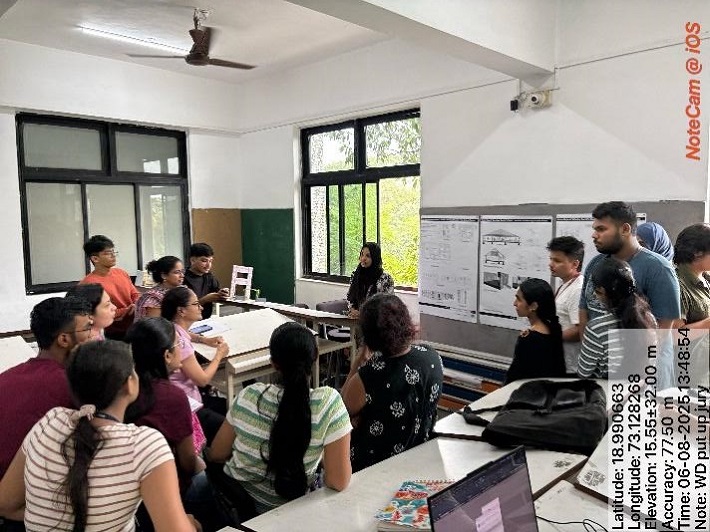 The day started with a lecture on Ways of Architectural Documentation and representation given by Dr. Prof. Neha Sayed, introducing representation techniques like photographic mapping, detail drawings, and types of drawings.