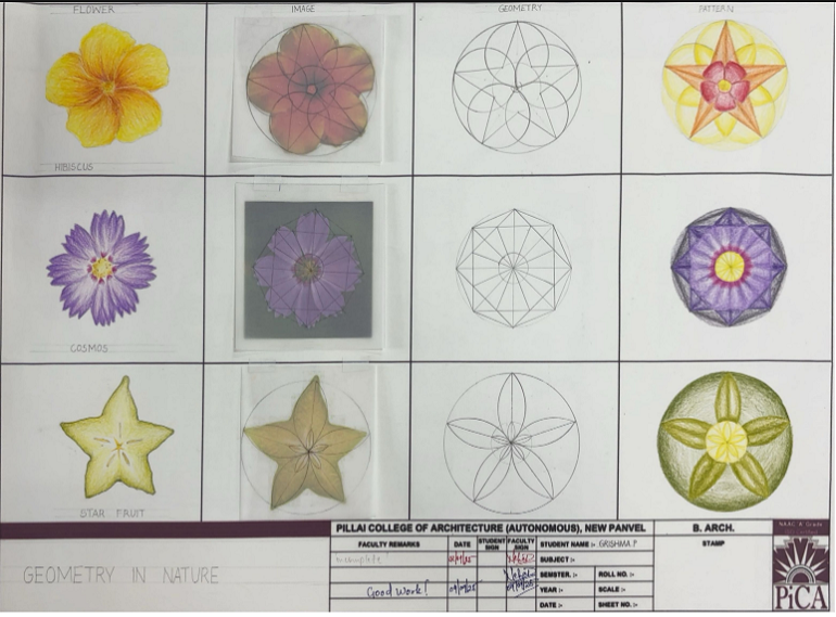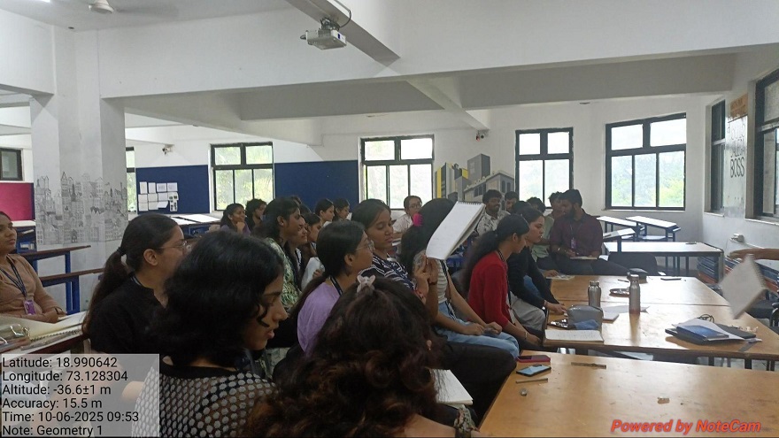 Short exercises were conducted to identify basic geometric shapes and nomenclatures used in geometry. Students actively participated in these exercises. Through this students could understand that Geometry is a fundamental aspect of architecture and is used to create aesthetically pleasing designs, plan functional spaces and ensure structural stability.