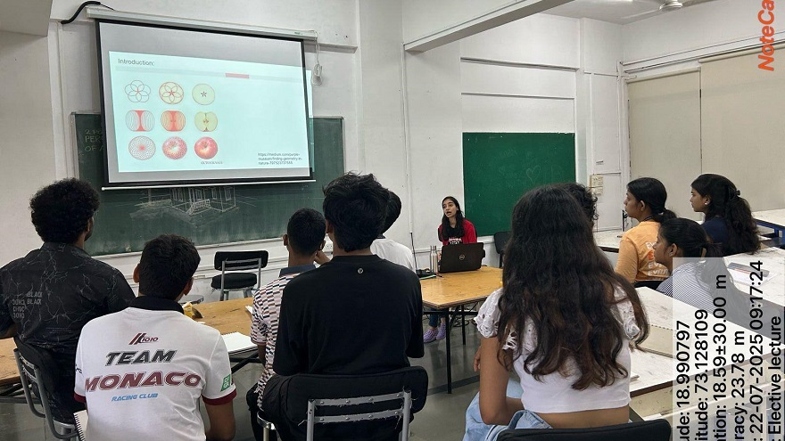 Prof. Neha Deshpande commenced the workshop “Architecture through the Lens of Geometry Workshop. The aim of the workshop was to orient the students towards an approach to a design project leading them to identify the geometric patterns and allowing them to experiment different forms and shapes.