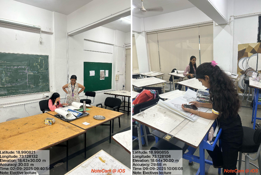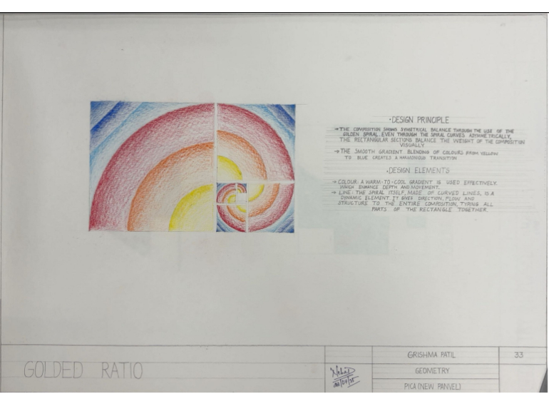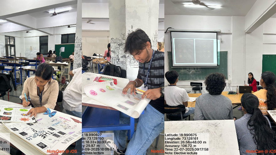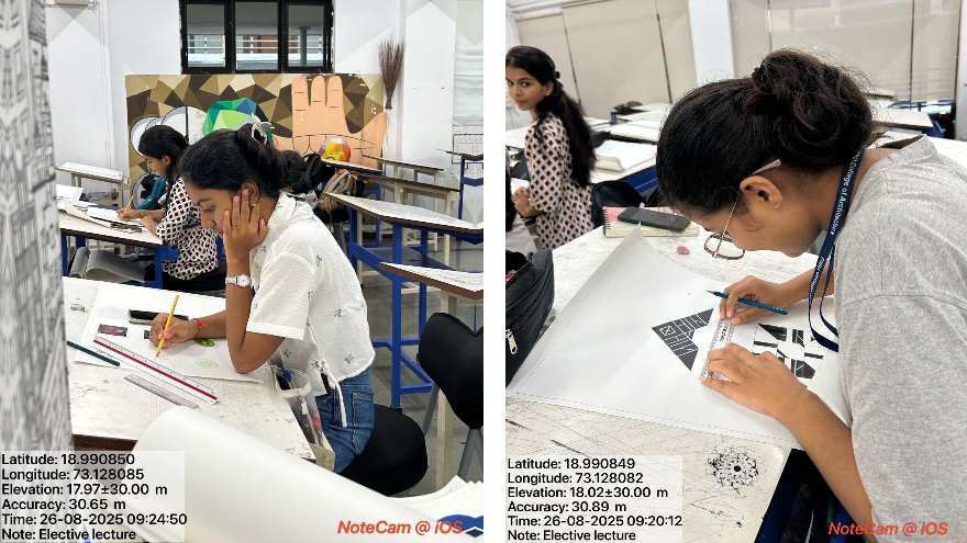 Following which Prof. Neha delivered a lecture covering sacred symbols used in geometry. Exploring Sacred Geometry and Architecture. Followed by the assignment. Students were guided with the patterns and symbols to draft them as an assignment sheet which was graded at the end of the session.
