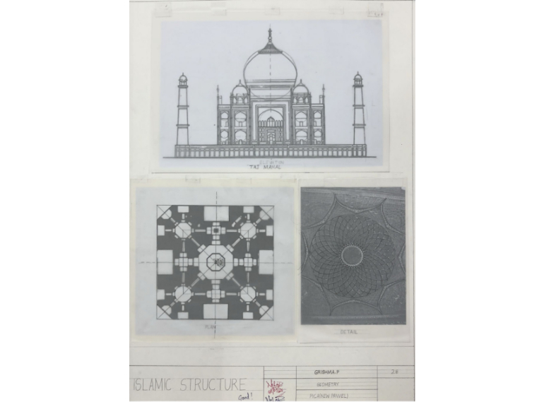 The students will learn more about how geometry can be used as a powerful tool in Presentations and Creativity. Documenting analytic drawings, Geometric design drawing, self (students) design assessment and geometrical corrections on their design plans, sections and elevations, volumetric and spatial checks and written inferences. Students will review several architect’s work, structures and concepts to analyze and are expected to utilize this learning in other subjects.