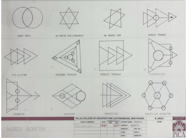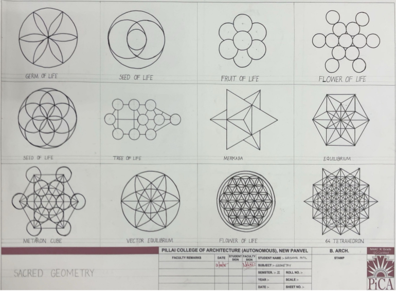 • To sensitize the students towards the subject of geometry and develop a flair for understanding and practicing the subject’s association with aesthetics in design and architecture.