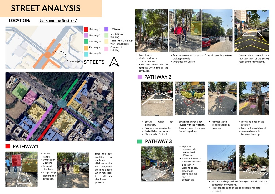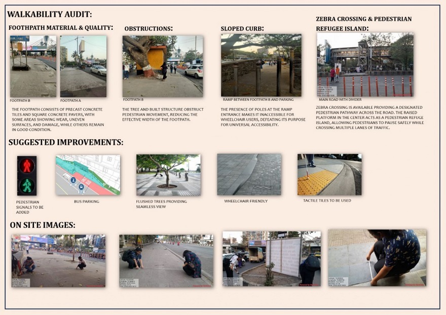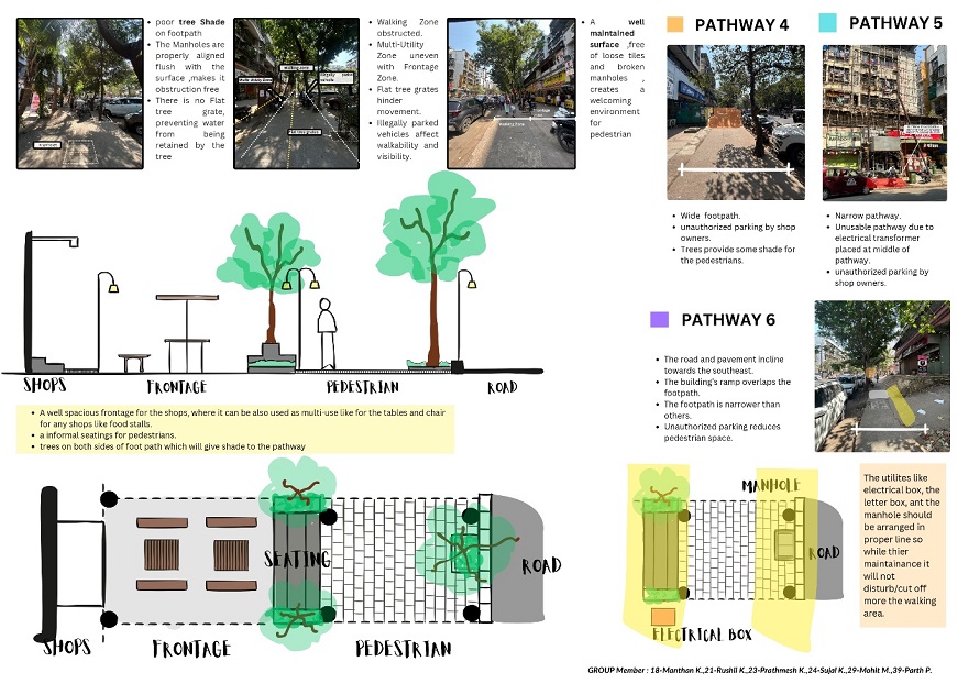 This interdisciplinary course introduces students to the theory and practice of designing cities that prioritize people’s needs, focusing on enhancing walkability and urban quality of life. The course includes a series of lectures, discussions, and workshops with experts in the field, including Prof. Smita Dalvi, and members of the Walking Project, Walkable MMR. Students explored concepts from the book Cities for People by Jan Gehl, investigate the challenges of pedestrian infrastructure, and engaged in field-based research through mapping and analysis of walkability in their own neighbourhoods. By the end of the course, students will have a comprehensive understanding of urban dynamics, pedestrian systems, and how they contribute to the creation of liveable cities.