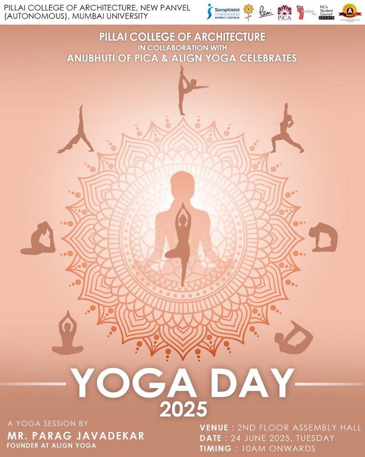 The Yoga Day Celebration was a wellness and awareness initiative organized by Anubhuti of PiCA in collaboration with Align Yoga, Panvel and SIBC at Pillai College of Architecture. The event was held on Tuesday, 10th June 2025, starting at 10:00 a.m. in the 2nd floor Assembly Hall on campus.